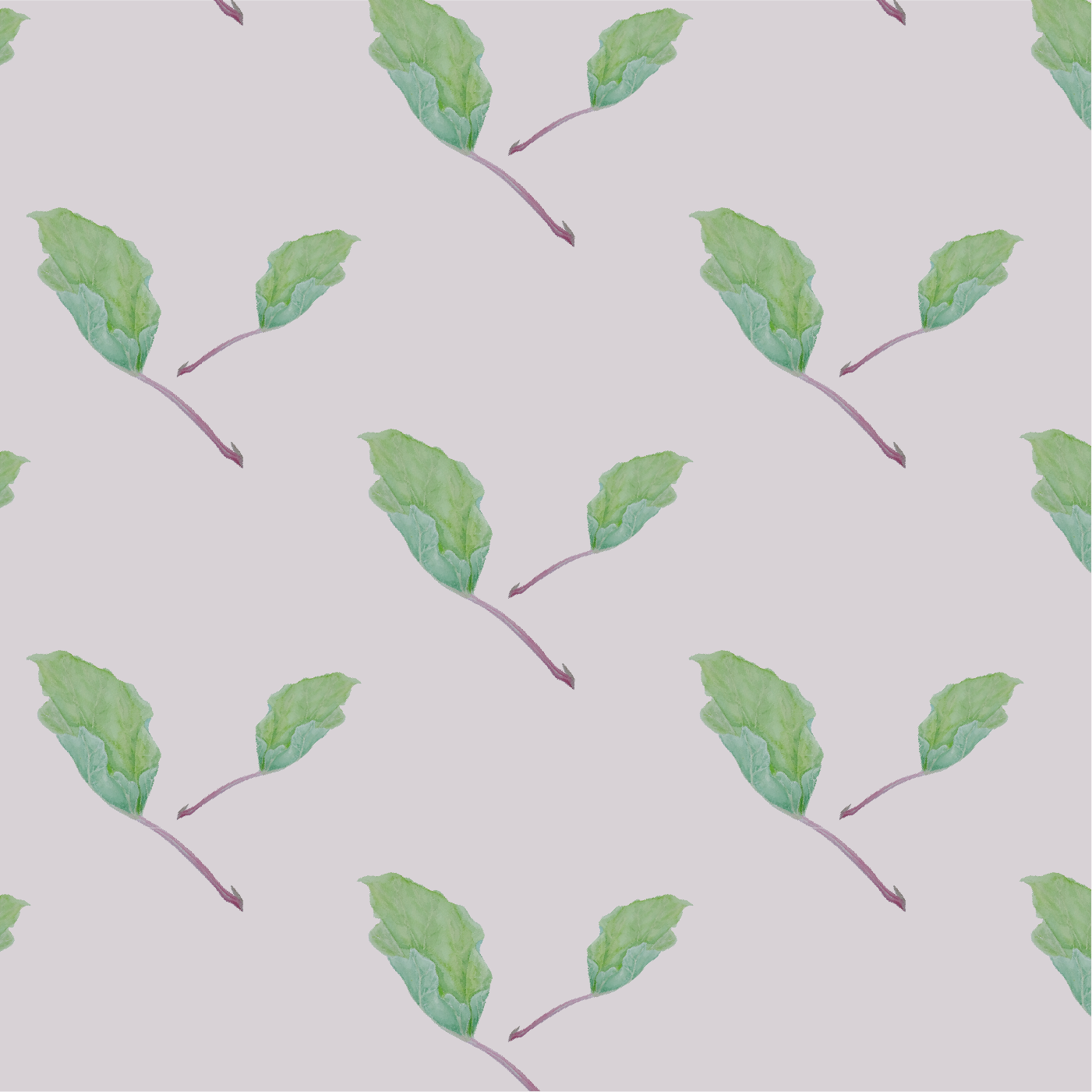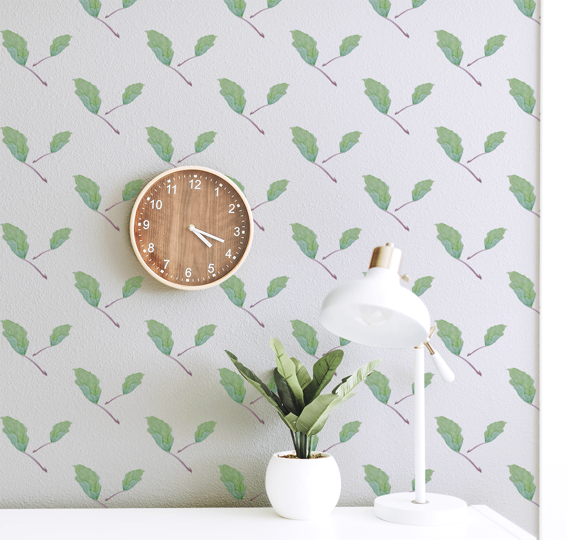 The wallpaper Rhubarb (Rheum rhabarbarum) inspired by the old kitchen gardens, gives a feeling of rural life. The motif is in varying gentle green and blue-green tones and is painted as an original in watercolor. The stem in beautiful violet-pink provides a nice contrast to the wallpaper's color choice. Available in four gentle and lovely colors that highlight the motif. Suitable for those who want to surround themselves with a garden even inside!