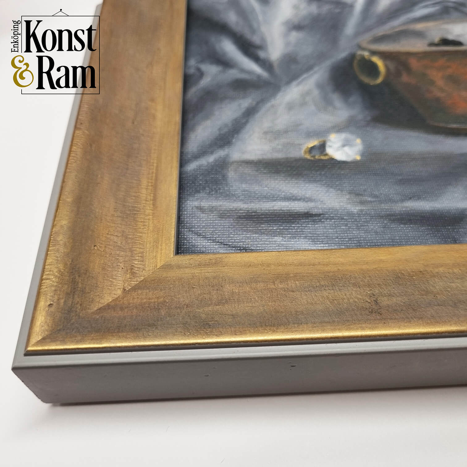 The frame is handmade according to the customer's chosen dimensions by Enköping Konst & Ram. An addition of approximately 2 mm in length and width for space is added to the standard dimensions of the art.