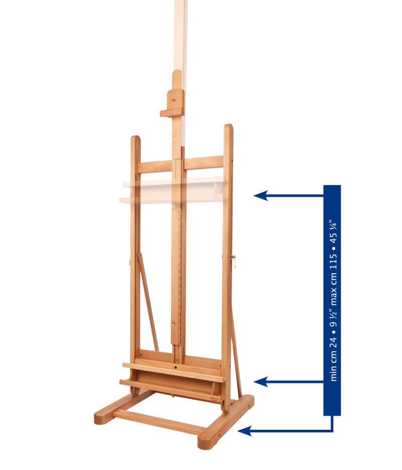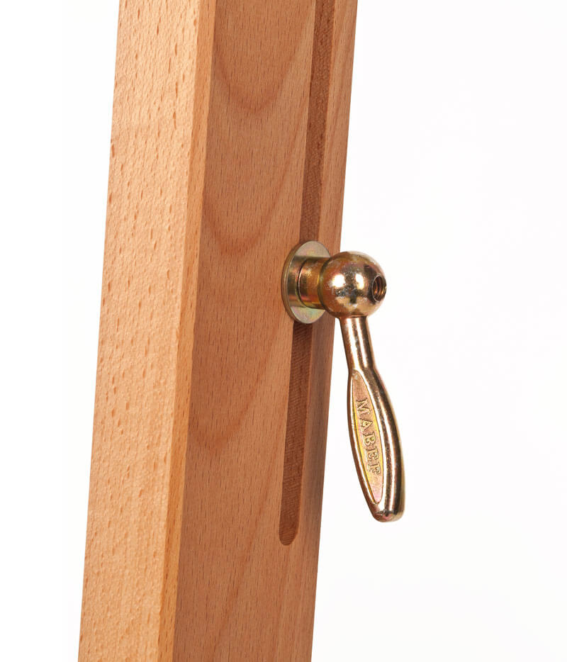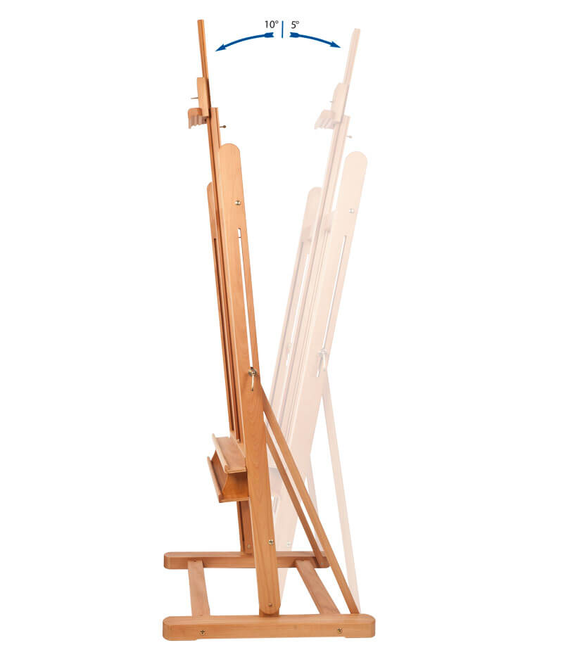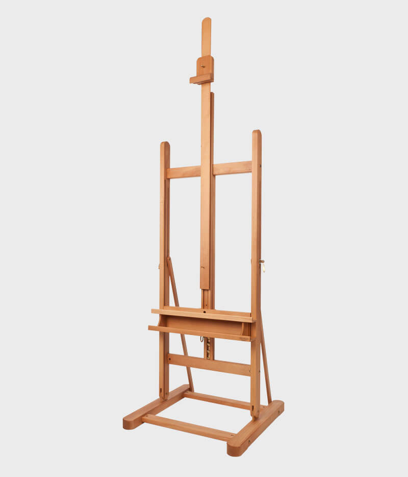 Ateljéstaffli för dukar upp till 215 cm i fläckresistent oljad bok från det italienska kvalitetsmärket Mabef. Robust och praktiskt kvalitetsstaffli med tilt både bakåt och framåt för bästa vinkel.
