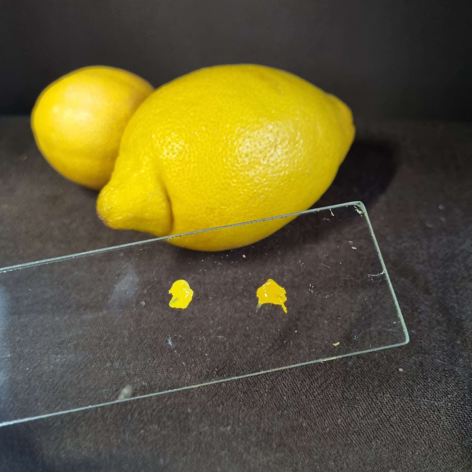 Provglaset är cirka 3-4 cm brett och cirka 15-18 cm långt, 2 mm tjockt.
