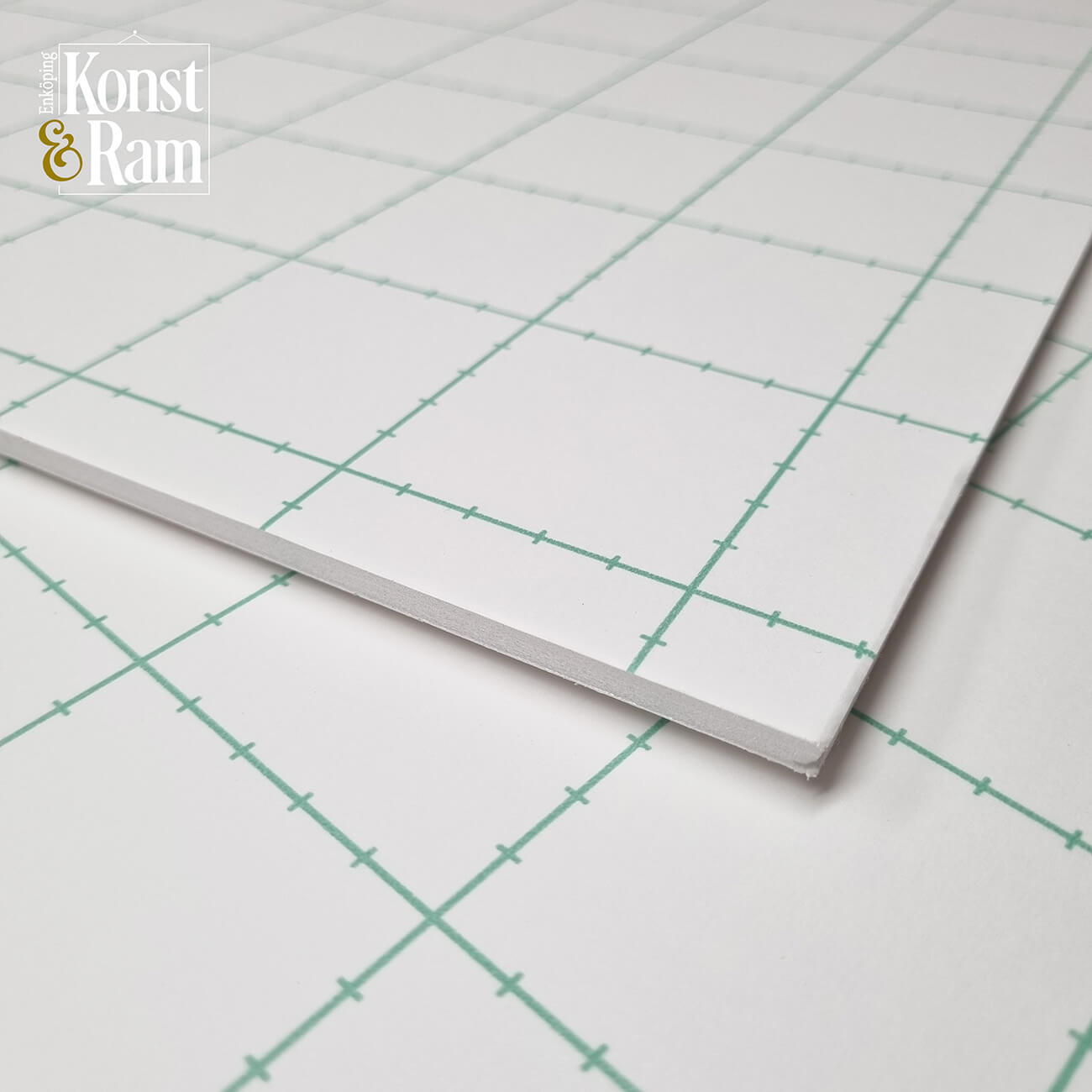 Självhäftande 5 mm foamboard som kan användas för att göra svävande monteringar av papperskonst, montering av pussel, direktmontering av affischer, modellbygge med mera.