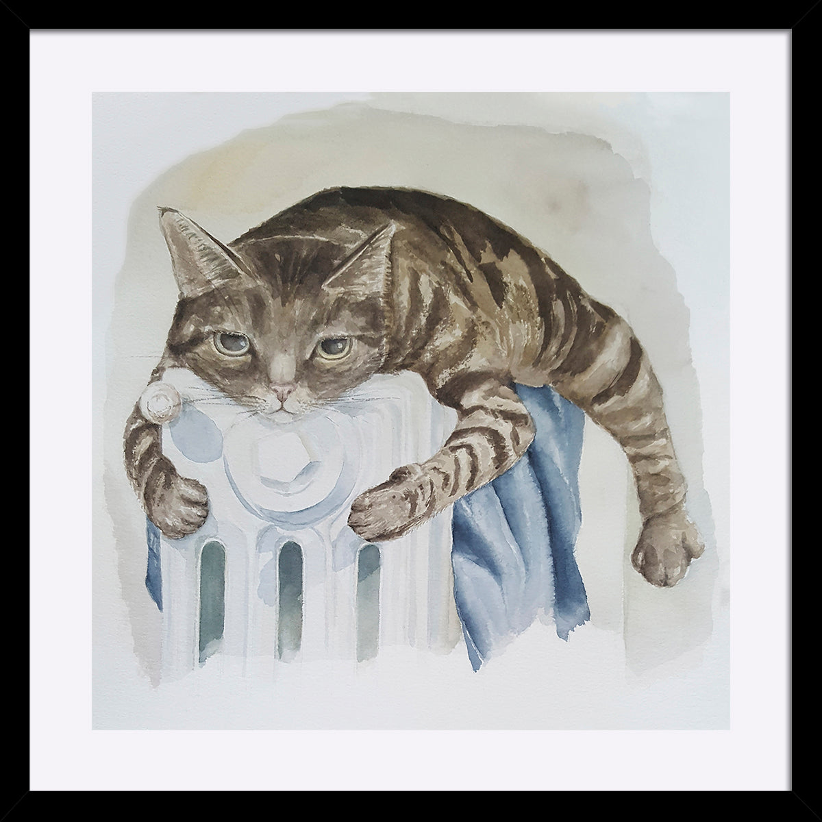 Ett gammalt vattenburet element passar utmärkt att värma slöa katter på.