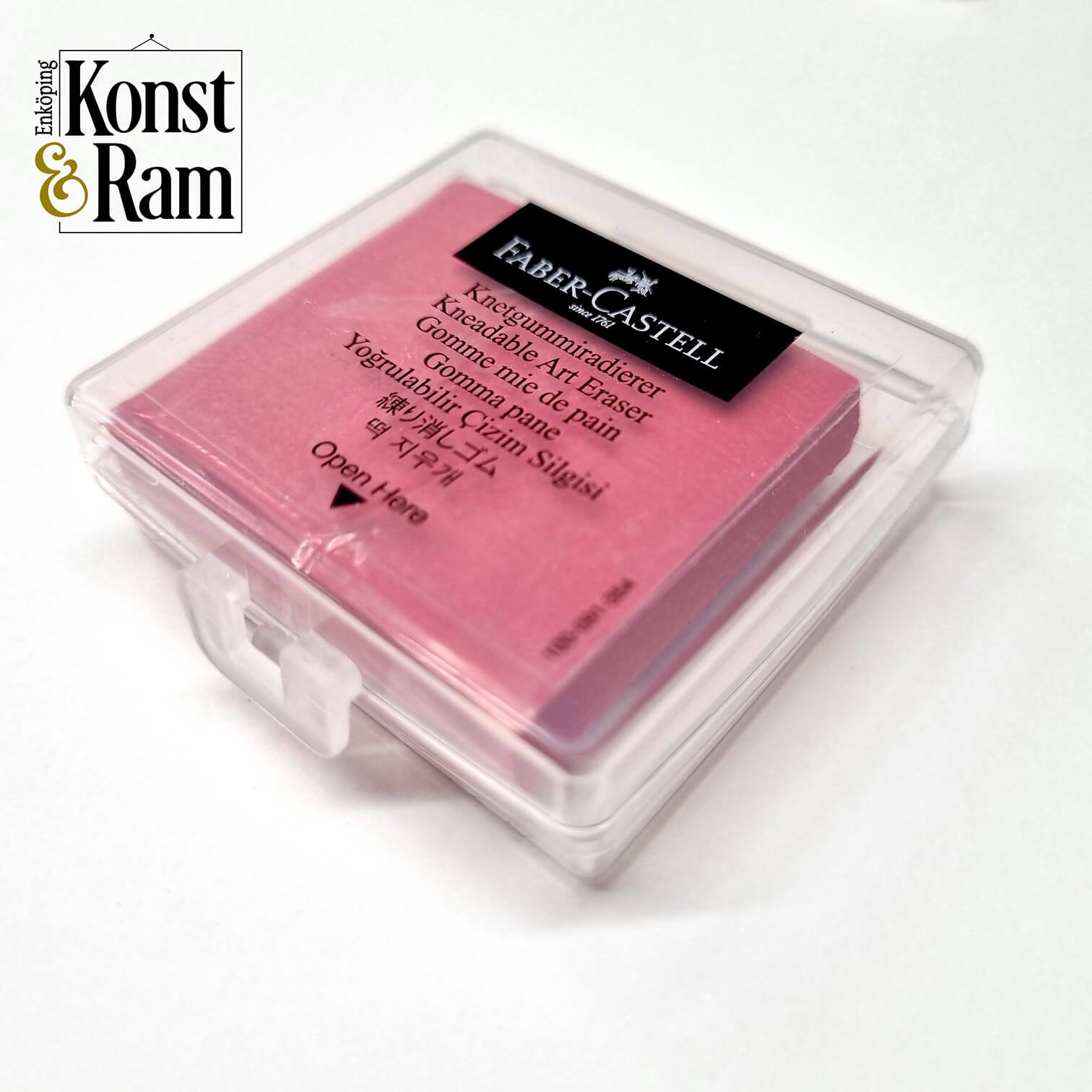 Knådgummi färgad. Mjuk och följsam variant av suddgummi som kan knådas och ta upp kol och grafit vid tecknande. Smular inte som suddgummi vilket är en stor fördel där du inte kan sopa bort smulorna.